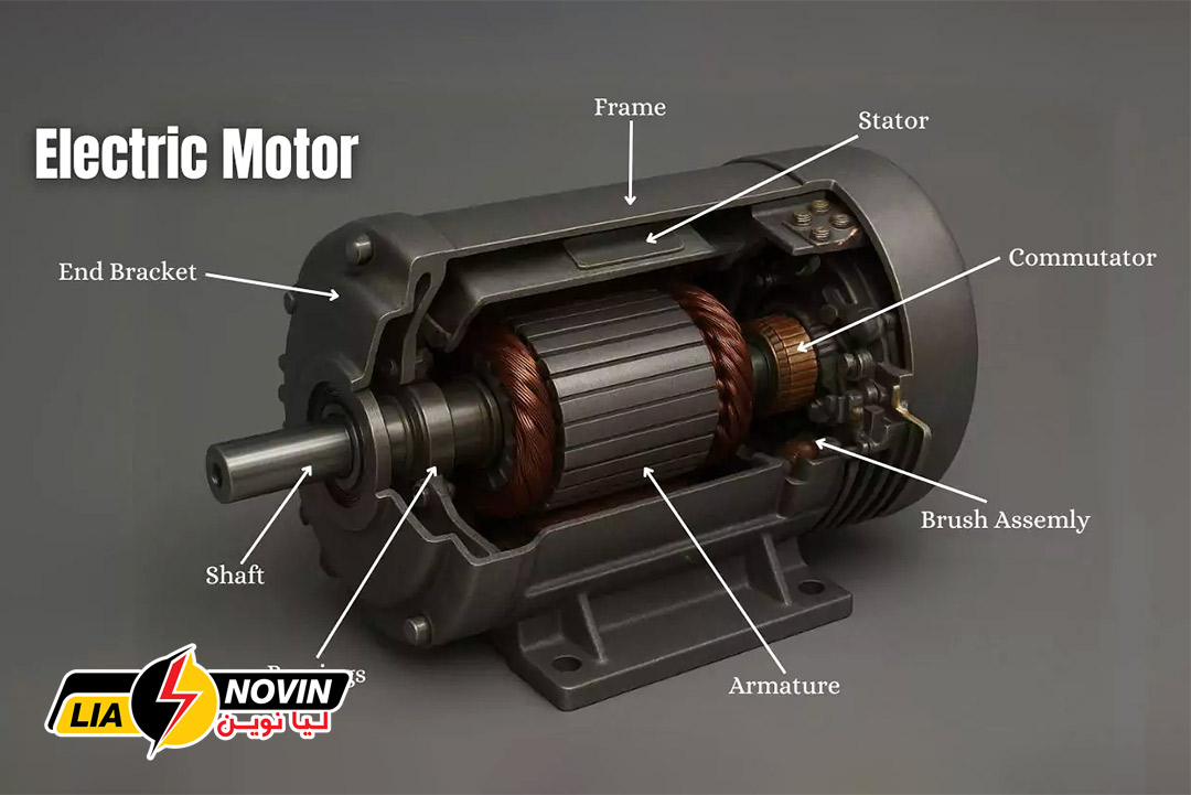 موتور الکتریکی ماشینی است که بر اساس القای الکترومغناطیسی (قانون فارادی و نیروی لورنتز) عمل میکند. با عبور جریان الکتریکی از سیمپیچهای استاتور (قسمت ثابت)، یک میدان مغناطیسی دوار ایجاد میشود. این میدان، روتور (قسمت متحرک) را به حرکت درآورده و انرژی الکتریکی را به گشتاور و چرخش مکانیکی تبدیل میکند. راندمان این تبدیل در موتورهای امروزی میتواند به بیش از ۹۵٪ برسد.